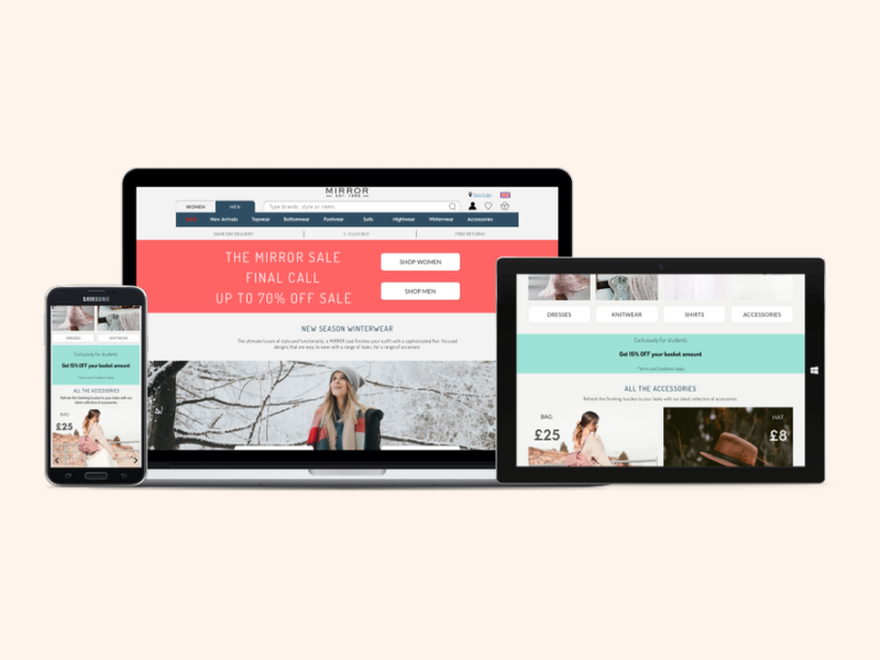 Mirror is a well established clothing brand with over 400 brick and mortar stores around the world. The rising customer need and a huge opportunity to sell online has directed them to start selling their products online. Mirror is known for selling affordable, good quality clothing accessible to everyone. They want a new word mark logo and a modern & fresh responsive website that should be easy to use as they want to replicate their success to online as well.