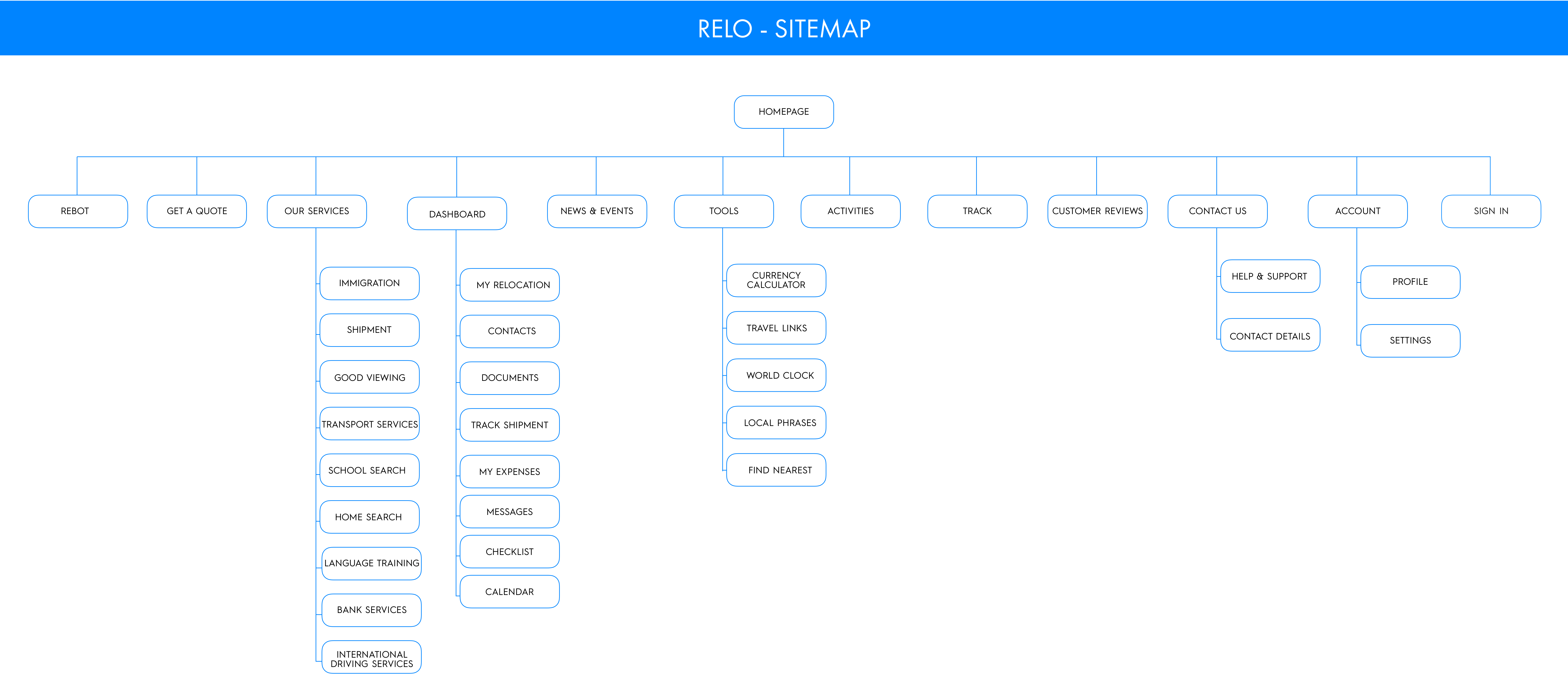 We wanted a simple yet a modern and fresh look for RELO. So, we chose white and blue colour palette with colourful icons on the homepage. Using this colour palette and adjectives in mind we developed the hi fi designs. We used the user flow to build an interactive prototype then. We then conducted a usability test and observed users testing it.